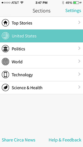 The app works by giving its users news articles that Circa publishes themselves and divides those articles into six sections: Top Stories, United States, Politics, World, Technology, and Science and Health. Upon choosing a section, the user has articles displayed to them in chronological order. Once a user reads about a story they’d like to keep tabs on, they simply tap the follow icon to receive notifications on the related articles.
